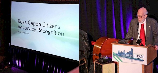 NARP presents this award on occasion to individuals and organizations, including governments and agencies, that have demonstrated outstanding leadership in their commitment to constantly improving and expanding rail-based transportation options for the people of a given city, county, state or region.