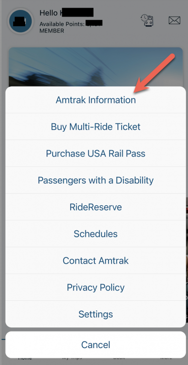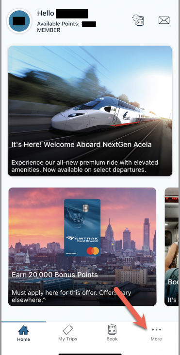 Go into your Amtrak Guest Rewards Account and click on “MORE”