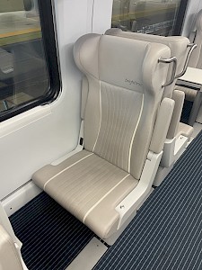 The train ride was quite a smooth ride and Brightline’s newer Siemens equipment is sleek, modern, and spotless. The seats are quite comfortable, though one thing I missed from Amtrak seating is the ability for the seat back to recline -instead, the lower part of the seat can move forward towards the seat in front of you to allow one to sit back a bit. The premium class seats are a bit wider, so they are arranged in 2x1 configuration, while in the basic Smart class they are 2x2. The trains are operated “push-pull” (meaning they are not turned around at the end points) so there are seats facing both directions and the seats in the middle of the car at the transition points have tables. The seats come with all the amenities you would expect – tray tables – overhead reading light, and baggage storage, as well as power outlets and USB charging ports for your mobile devices on both sides. There are also window shades that can be pulled down. The Wi-Fi seemed a lot speedier and more reliable than the service I had on any other previous train ride, and the internet service for the Wi-Fi is by SpaceX’s much talked about Starlink satellite service. The restrooms are fully accessible, clean, and modern with touchless controls and automatic doors. The trains move fast with 125 MPH speeds on the newly constructed dedicated alignment for Brightline between the Florida East Coastline and Orlando airport, and they max out at 90 MPH on the shared Florida East Coast corridor – they are testing to increase this to 110 MPH. The on-board crews were all very friendly and provided very timely announcements about any unexpected delays, including slowdowns for train meets. We took a lengthier delay on the way back north for a draw bridge that would not close, and the crew provided timely updates on the situation while we were stopped.
