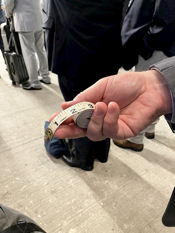 Of course, I don’t expect you to just take my word for it, and I was curious about it myself, so I decided to be more scientific about it. I have a handy-dandy tape measure (pictured) that I almost always take along whenever I travel because I geek out over seat stat comparisons. So that I’d have a same-day comparison, I booked a first-gen Acela ticket down to Providence before riding back up on the NextGen.