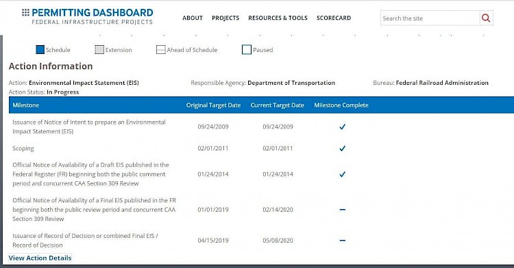Revised Final EIS release dates have slipped from 2016, to 2017, to 2018 and then into 2019. Over the past 18 months, the State has pointed fingers at the Federal Railroad Administration (FRA) for the latest delays, while the FRA has contended that the State is also to blame.