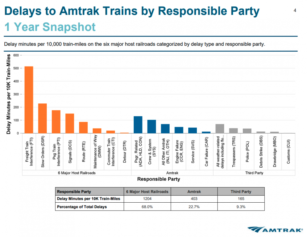 Customer on-time performance (OTP) data are out for March today from Amtrak's Host Railroad Group and it ain’t pretty: once again, not one single Amtrak long-distance service met the new regulatory standard for Customer OTP. State-supported routes, as a group, came closer to meeting the standard but slipped in March compared with the 12-month average. The Northeast Corridor – which Amtrak fully controls – did better in March than the 12-month average, and easily met the new regulatory standard.