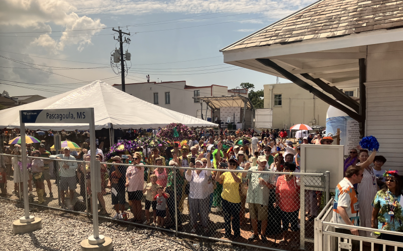 My very first work trip as your President & CEO – one month after I started – was to jump-start our Association’s efforts to support restoration of this service, cris-crossing counties in Mississippi and Alabama to press local officials about the importance of getting trains moving again through the region. And I rode a promotional “inspection train” in 2016 that was a kind of preview of my experience yesterday, rolling into each station to thunderous crowds, raucous second line bands, and communities putting on their Fat Tuesday Best to out-do one another in welcoming us, their train, to their town.