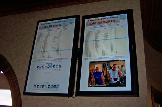 TheKalamazooTransportationCenteris also the first center in the country to have multiple transportation schedules on one board, DeLora said. The boards operate off of city computer data.