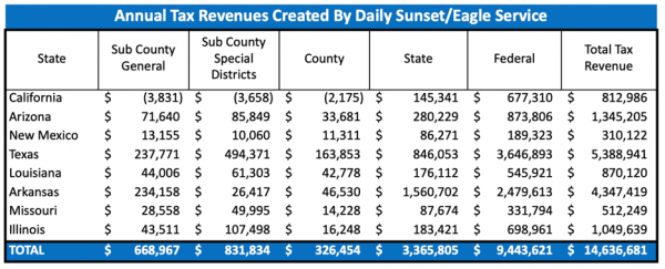 Fig. 2: Annual Tax Revenues Created By Daily Sunset/Eagle Service