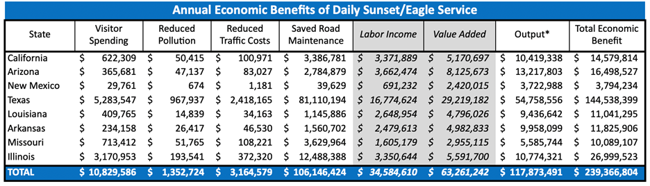 Source: Rail Passengers Railway Benefits Calculator, IMPLAN Economic Modeling Tool