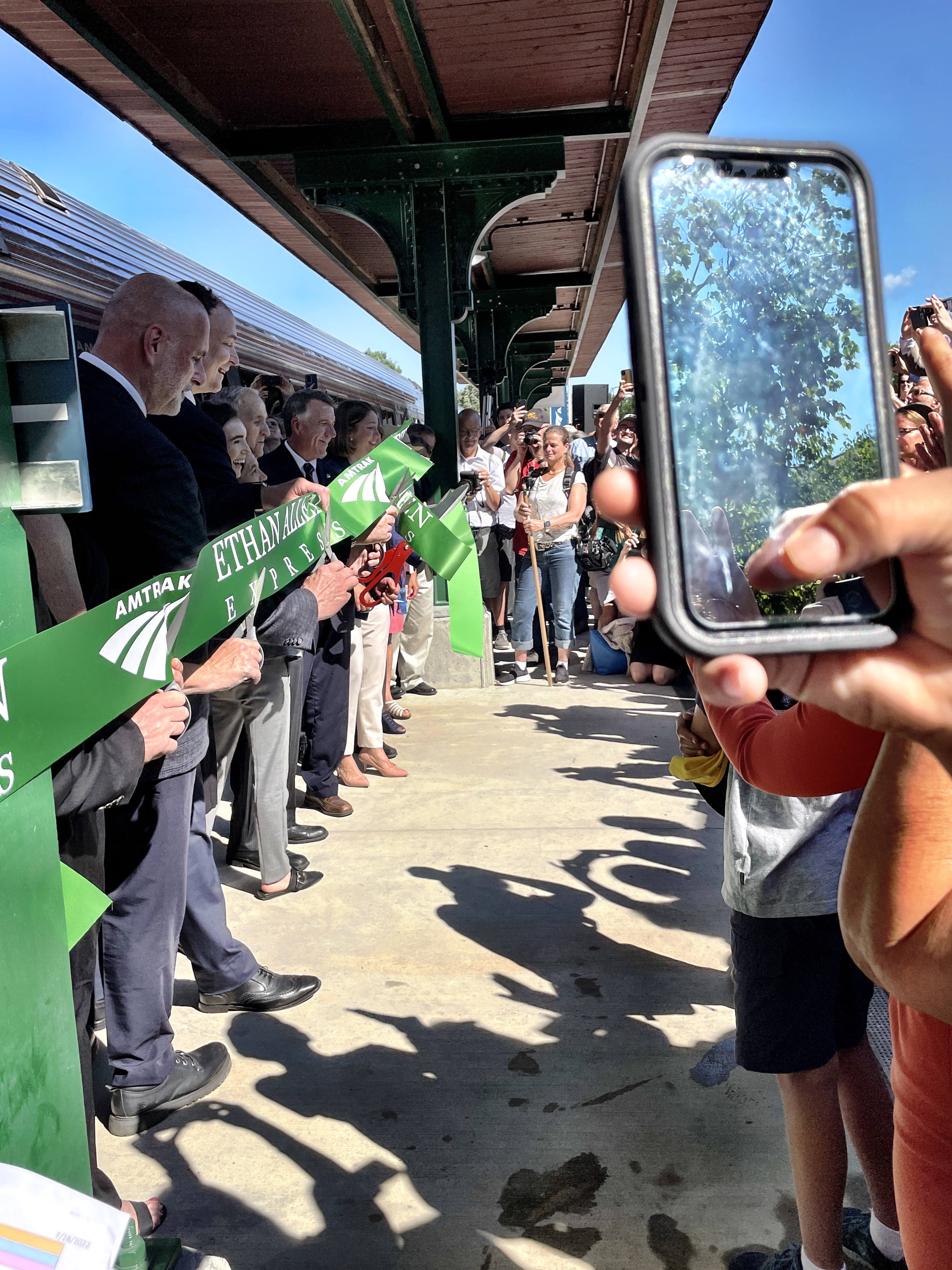 On July 29, 2022, true interstate passenger rail service returned after a gap of 69 years to Burlington, Vergennes, and Middlebury, Vermont—continuing via Rutland, Saratoga Springs, Schenectady, Albany and there down the magnificent former New York Central “Water Level Route” along the Hudson River to New York City. The ETHAN ALLEN EXPRESS is extended 67 miles further north to connect western Vermont and the Champlain Valley to the Amtrak National Network. It was a great day!