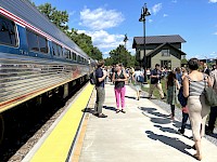 It is also worth admitting that the initial schedule between Burlington and Rutland seems to be nearly 20 minutes longer than required. Amtrak is allowing two hours each way—but in 1940 the Rutland’s southbound “Green Mountain Flyer” covered this stretch in one hour/40 minutes, drawn by steam engines, with six regular and/or flag stops—in contrast to only two enroute stops today. We know time can be cut with experience, because the July 29 inaugural train left Middlebury 22 minutes late yet arrived Rutland on-time!