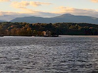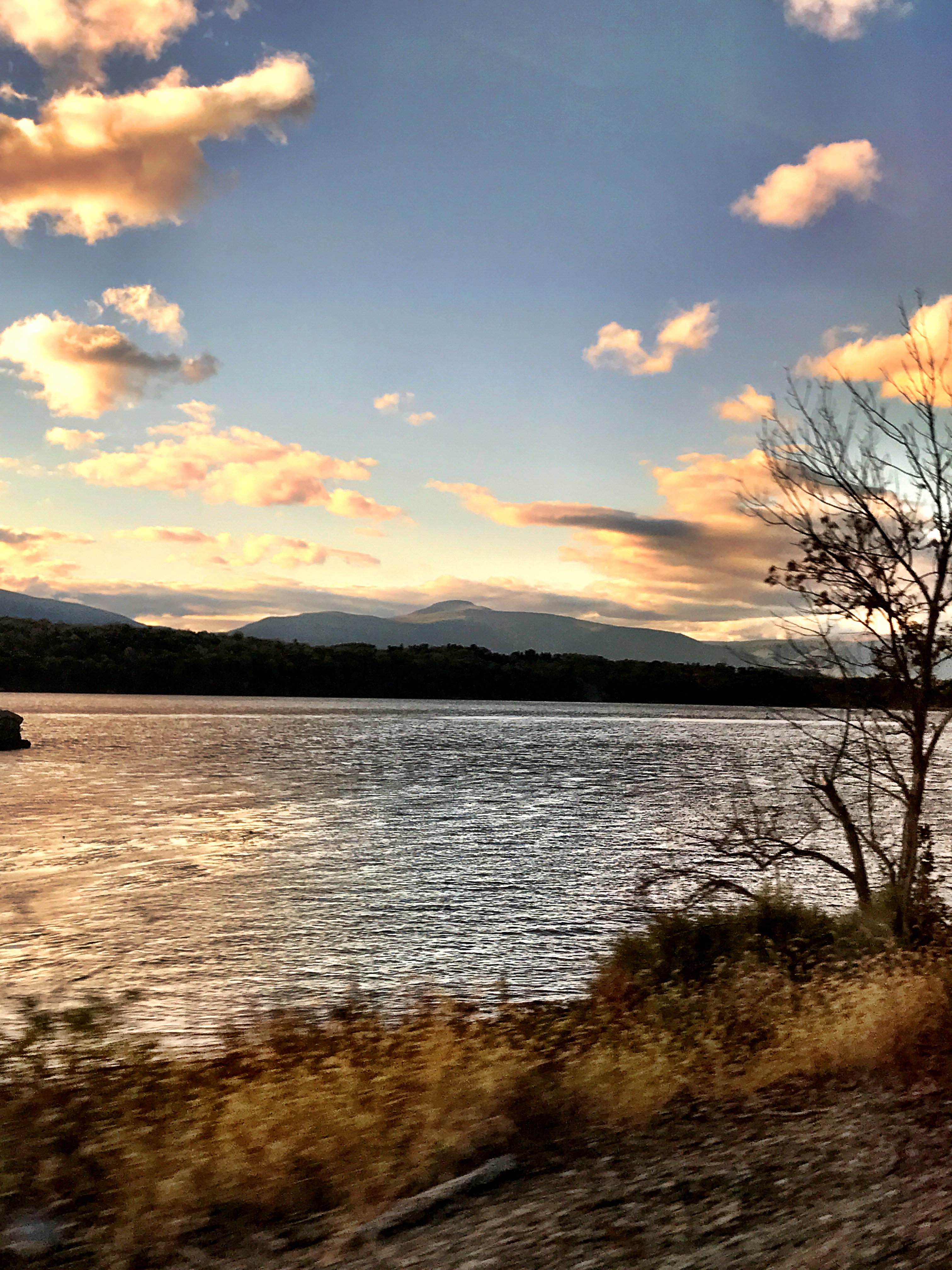 Almost immediately upon departure lovely views of Lake Champlain and the Adirondack Mountains across the lake in New York appear. The train begins an ascent up from the lakeshore to Shelburne and the countryside opens-up to reveal the classic Vermont landscape of dairy farms, substantial barns, quaint farmhouses and now fields of wine grapes as well as carefully tended pastures and corn fields. In contrast to the rugged country along the VERMONTER route, this is a far more pastoral landscape, but there are frequent views east to the high peaks of the northern Green Mountains and west to the even more rugged Adirondacks.