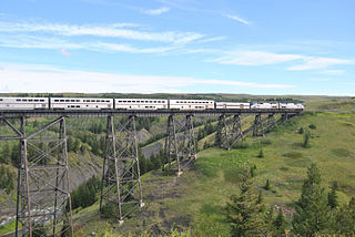 Amtrak's Empire Builder near East Glacier, MT. Credit to Steve Wilson via Wikimedia Foundation.