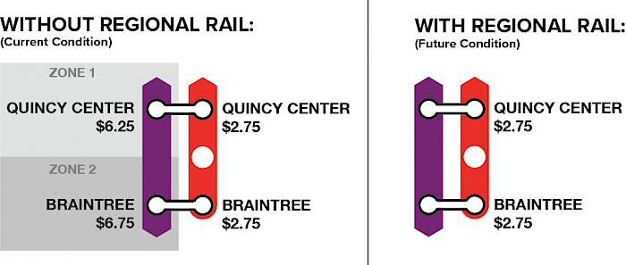 The success of this concept is evident on the Fairmount Line, where ridership has tripled since 2012 after most of its stations were placed into Zone 1A, which lets users ride for the same fare as the subway.