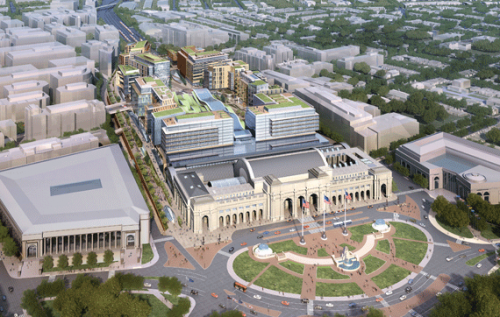 Intercity railroads have always been about property development. This is the reason why historic downtown cores across the nation are usually within remarkably close proximity to train stations. This has held true for towns and cities of all sizes. Earlier this year, Washington D.C. and the mess of stakeholders involved with its secular cathedral also known as Union Station unveiled a plan to expand the passenger concourse in a transformative move by developing the air rights above the tracks, therefore seamlessly introducing a massive and grandiose segue between five neighborhoods where there is now a rail yard and a looming pair of retaining walls. This is a scintillatingly retro-progressive move, given that similar proposals, manifesting as Grand Central and Penn Stations, transformed the city of New York a little over a century ago.