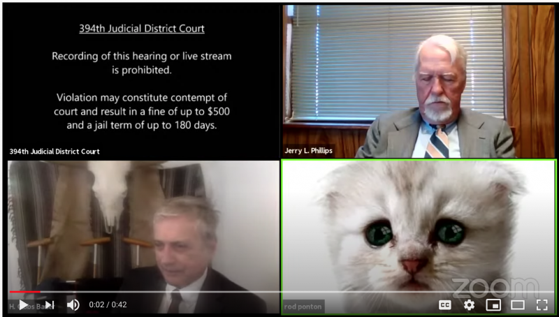 For your consideration, click here to watch as a hapless attorney tries to participate in a hearing -- before an actual judge -- through Zoom. Evidently someone had an entertaining filter set up before he logged on and, well...just watch it yourself. I'm willing to bet this poor fellow would give anything right now to be able to show up in person to work.