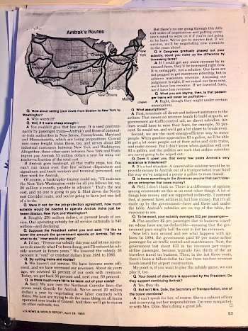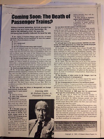 “Mr. Claytor, if President Reagan gets his way, all federal subsidies to Amtrak will end September 30. How many passenger trains will you be able to run then?”
