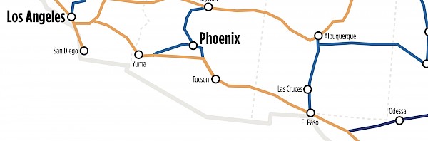 Phoenix is currently the largest metropolitan area in the United States without intercity passenger train service, and the Phoenix - Tucson corridor has the highest number of super commuters in America. Passenger rail will not only address these urban mobility challenges, but connect rural markets to economic opportunity by allowing safe and fast travel year round on the congested Interstate-10. [VOTE NOW]
