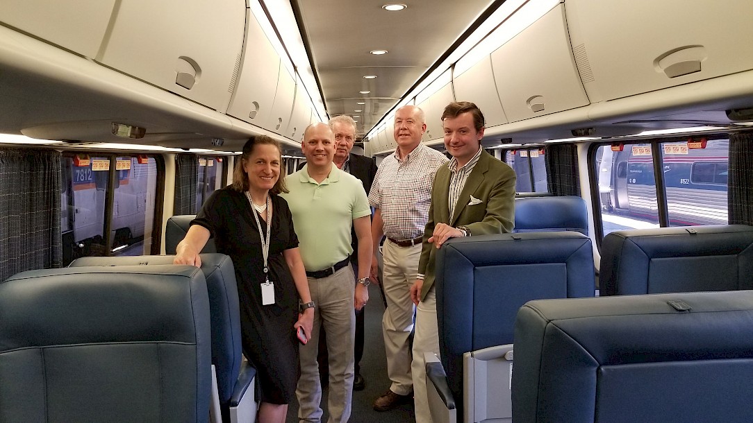 The Rail Passengers Association toured one of the newly refreshed Acela trainsets today at Union Station in D.C. The refresh program includes upgrading Acela’s interiors, from seat cushions and covers to new carpet and even the bathrooms, and follows closely on the heels of a successful and well-received refresh on Amfleet I coaches on the Northeast Corridor and some midwest services. Next in line are Amfleet IIs and Superliners, and work is moving quickly to roll out these improvements fleet-wide.
