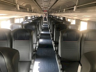 Refreshed Amfleet II coaches are now appearing on trains across the east. Similar to the Amfleet I refresh program, these longer-distance cars feature new seat & leg rest cushions; new carpeting; brighter LED reading lights and other enhancements.