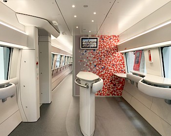 Amtrak this week provided an interior tour of an Acela II Trainset mock-up at a press event held at a Alstom facility in New Castle, DE. The first trainset, being constructed by Alstom in Hornell, NY, is expected to enter testing later this year and revenue service with the new equipment is expected starting in 2021.