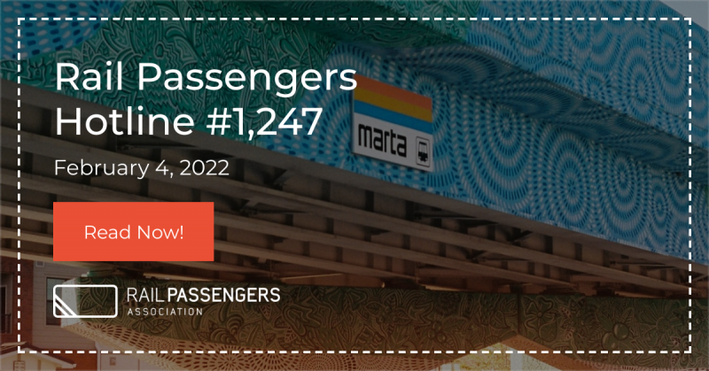 "Thank you to Jim Mathews and the Rail Passengers Association for presenting me with this prestigious award. I am always looking at ways to work with the railroads and rail advocates to improve the passenger experience."