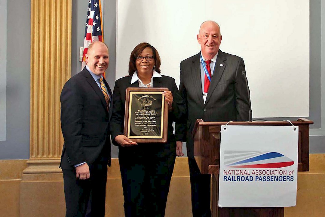 Washington, D.C. – The National Association of Railroad Passengers (NARP) honored Shamonda Jones, senior manager of Metra Commuter Rail in Chicago, with the Dr. Gary Burch Memorial Award during NARP’s April 12th congressional reception. Jones was nominated by Metra’s leadership for her dedication to fostering a culture of safety among the 40 dispatchers who ensure the safety of the 300,000-plus passengers who ride Metra every day.
