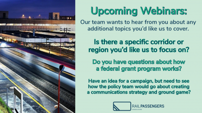 "When [NARP] comes to Washington, you help embolden us in our efforts to continue the progress for passenger rail. And not just on the Northeast Corridor. All over America! High-speed rail, passenger rail is coming to America, thanks to a lot of your efforts! We’re partners in this. ... You are the ones that are going to make this happen. Do not be dissuaded by the naysayers. There are thousands of people all over America who are for passenger rail and you represent the best of what America is about!"